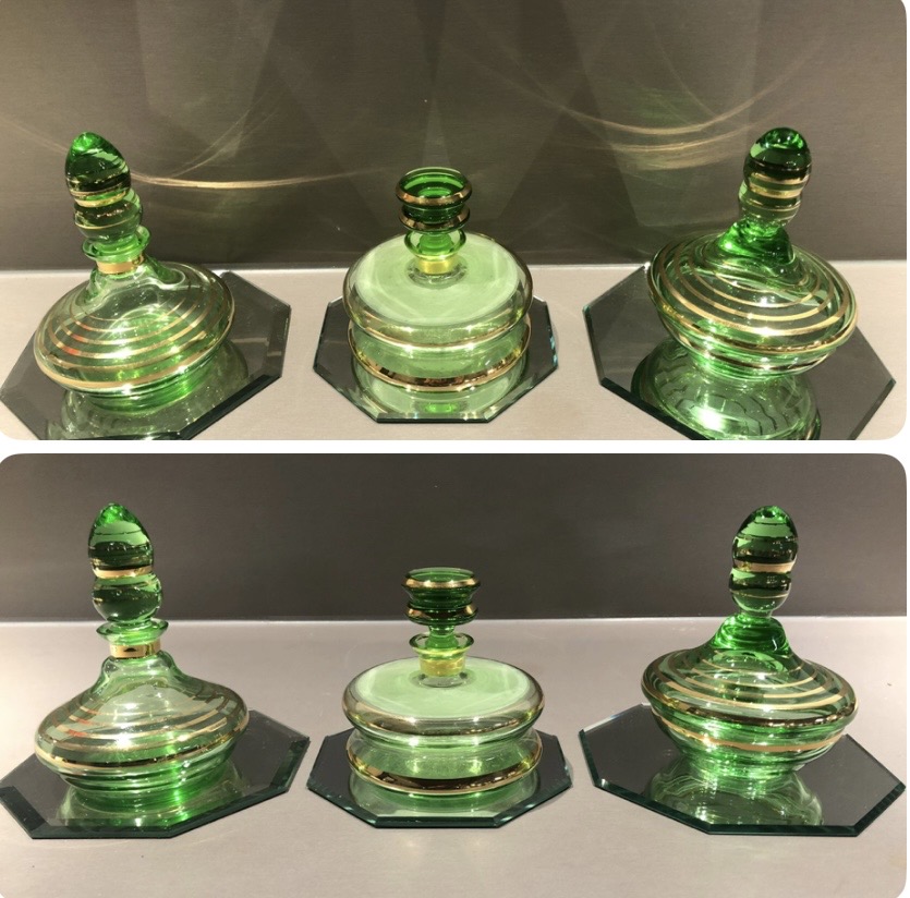 Prachtige Art Deco parfumflesjes en een elegant glazen bijoux doosje met deksel 💎
